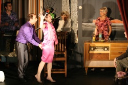 Die Bühne ist hell erleuchtet, die Figuren des Stückes tappen aber im Dunkeln. Bruno Miller, ein mäßig begabter Bildhauer, will seinen Schwiegervater in spe mit den “ausgeliehenen” Möbeln seines Freundes und Nachbarn Harald beeindrucken. Ein Kurzschluss taucht seine Wohnung plötzlich in Finsternis. Situationskomik und erhellende Missverständnisse sind das Resultat: Alle stolpern und stürzen. Gleichzeitig wähnen sie sich unsichtbar und somit unbeobachtet. Die Verlogenheit in den Beziehungen tritt deutlich zu Tage. Ein amüsantes, turbulentes und erhellendes Spiel um Schein und Sein.